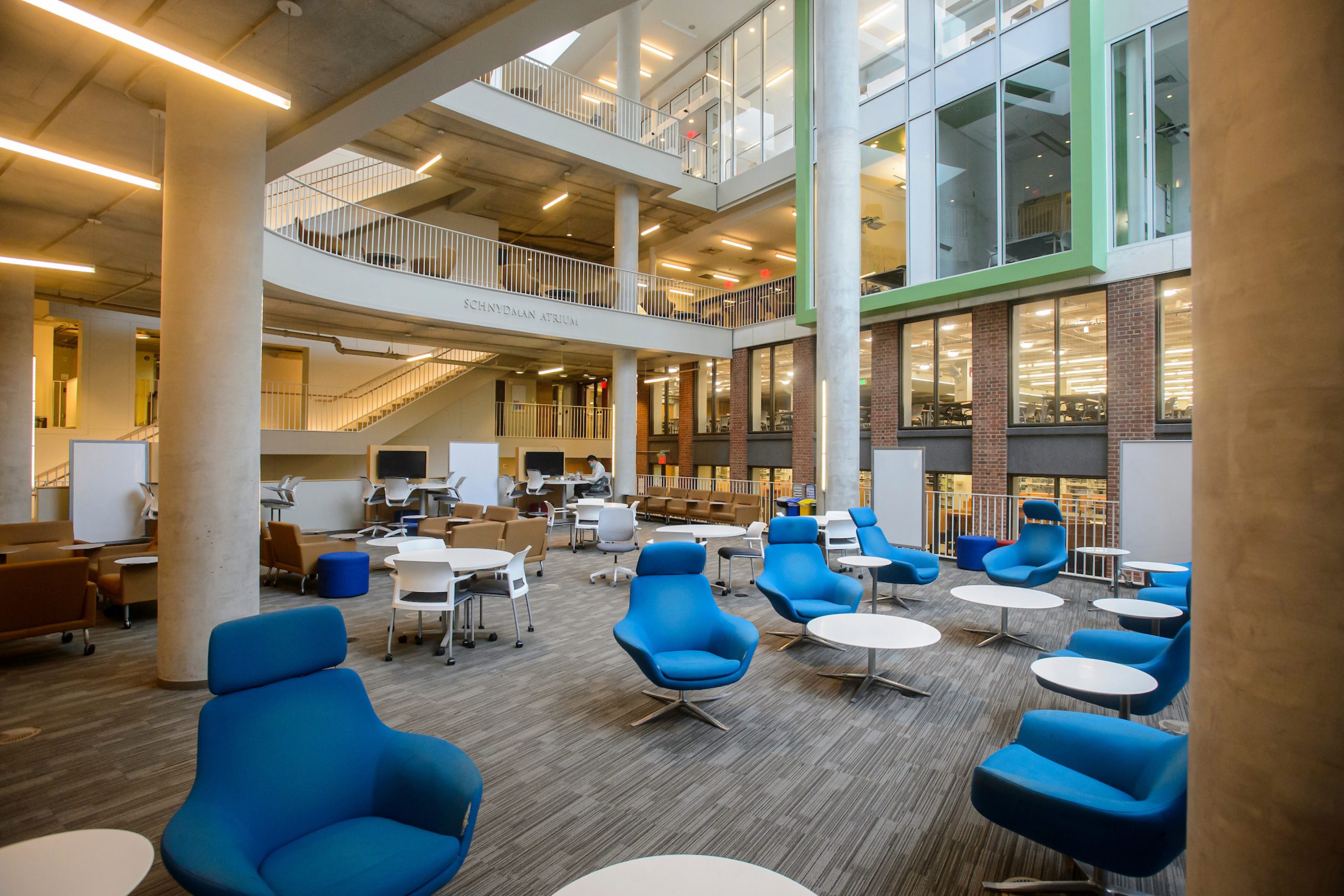 Blue Zones are external facing areas and activations that are high-visibility and audience-agnostic. Unlike the interior of a specific suite or lab, placemaking in a Blue Zone must represent the totality of our brand. As such, any projects in Blue Zone spaces must be done in collaboration with University Communications.
