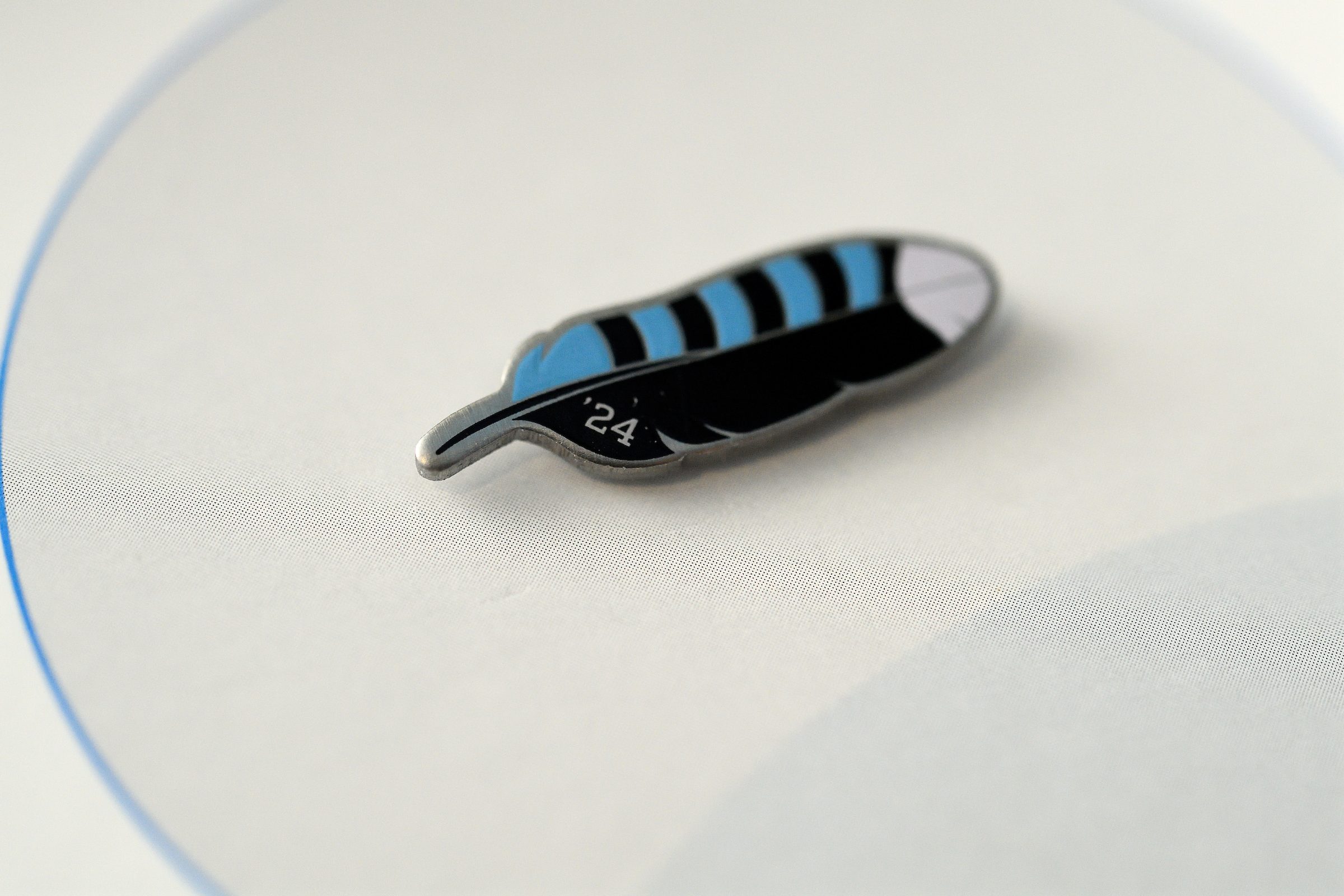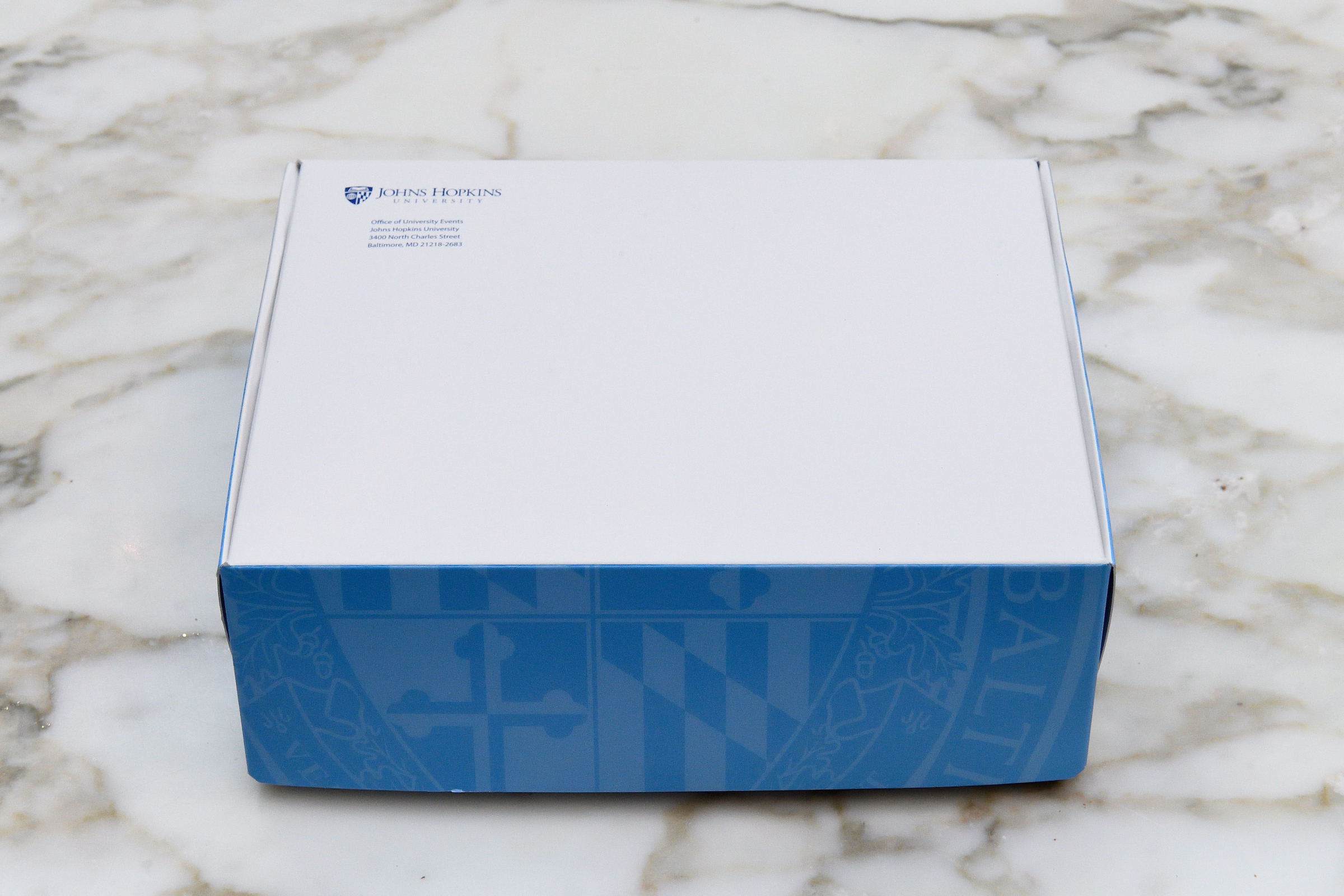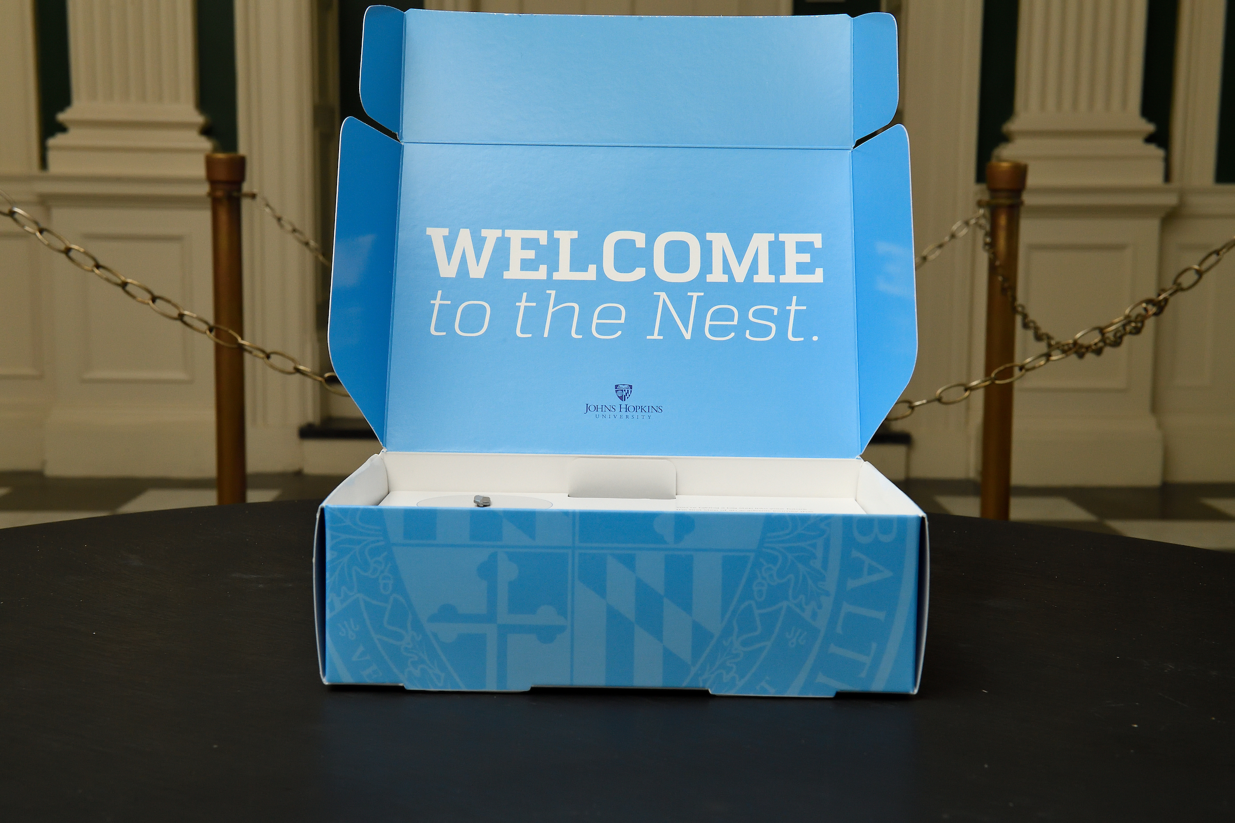 Deliverables & Design Thinking: The set of enamel Blue Jay feather pins draws from our distinct mascot iconography. The selection to include two pins provides a meaningful opportunity for the recipient to acknowledge someone who supported their Hopkins journey.