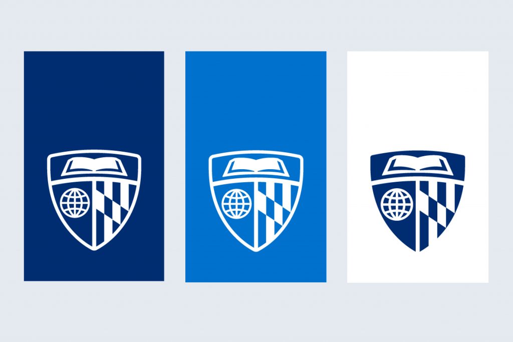 As recognizable symbols of the University and its divisions, shields may be used as design elements without the “Johns Hopkins University” wordmark.